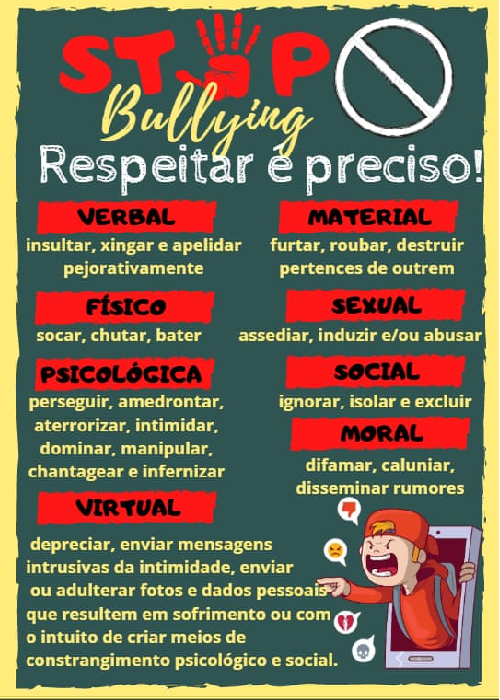 Informar o aluno sobre o que fazer em caso de ser alvo dessa prática; -