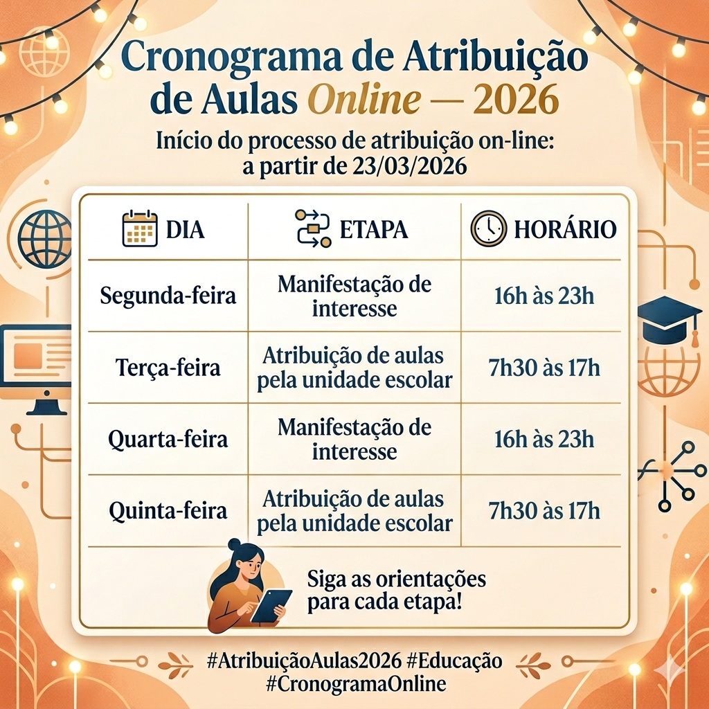 Dispõe sobre os procedimentos e sobre o cronograma para atendimento dos integrantes do Quadro do Magistério – QM para atribuição de classes e aulas para o ano letivo de 2026, no âmbito do Processo Anual de Atribuição de Classes e Aulas de 2026, em conformidade com a Resolução SEDUC nº 3, de 13 de janeiro de 2026