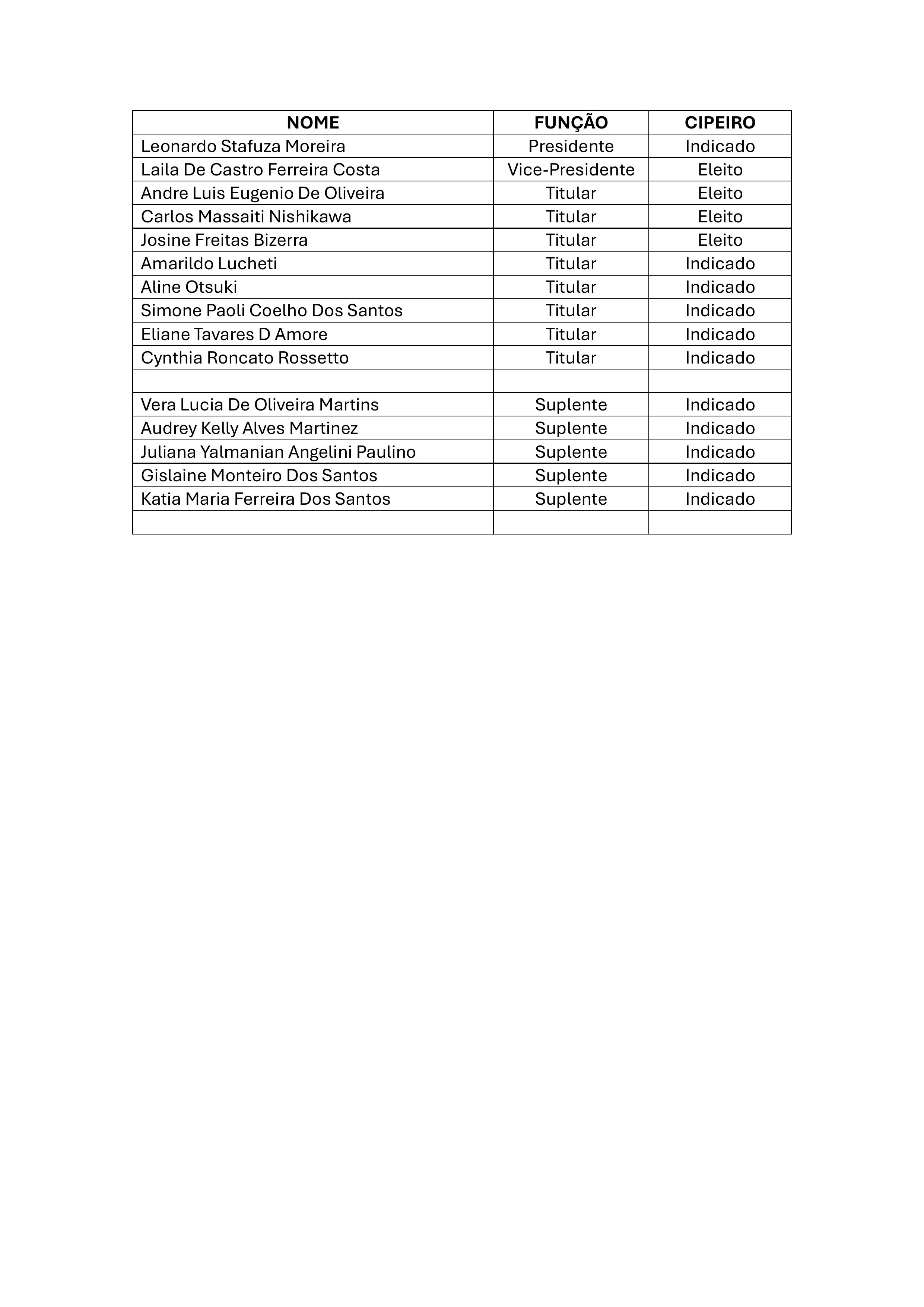 Aos 22 dias do mês de maio do ano de 2025, na sede da ARACATUBA, situada no município de ARACATUBA, a Comissão Eleitoral do processo de votação da CIPA 2025, divulgam o relatório de apuração da Eleição do referido Processo conforme estabelece a Norma Regulamentadora NR-5, aprovada pela Portaria no 3.214/78 do Ministério do Trabalho e Emprego.