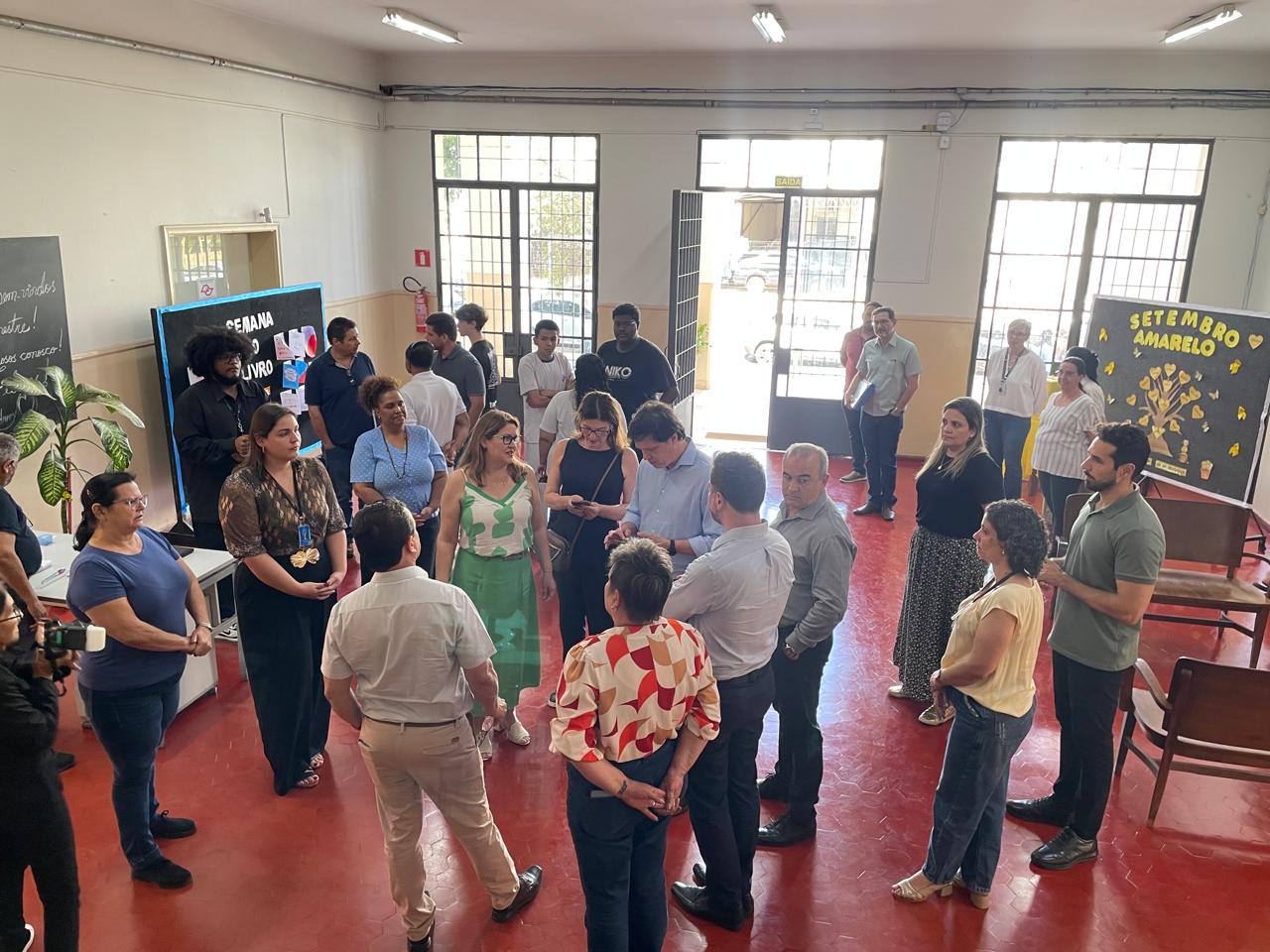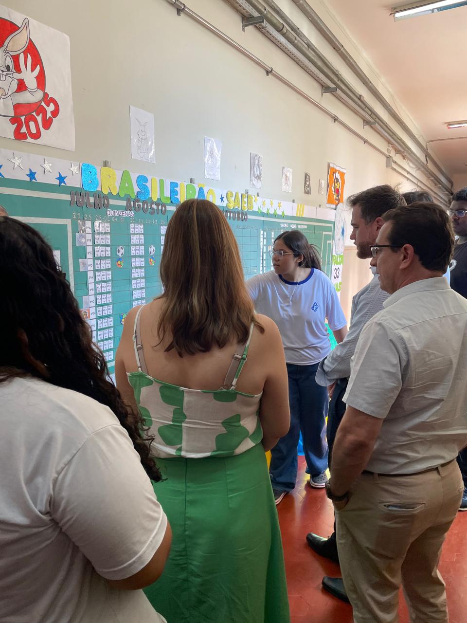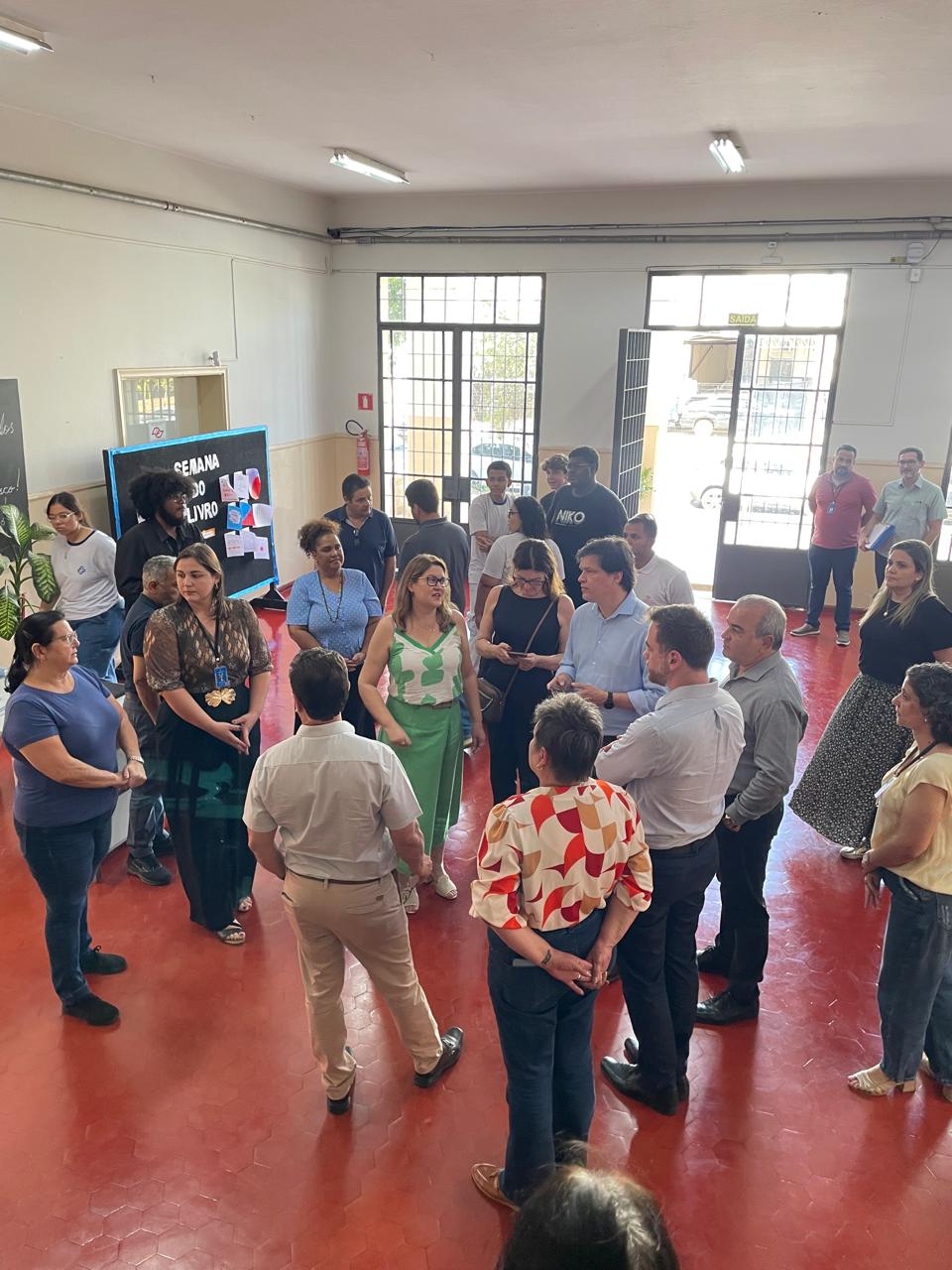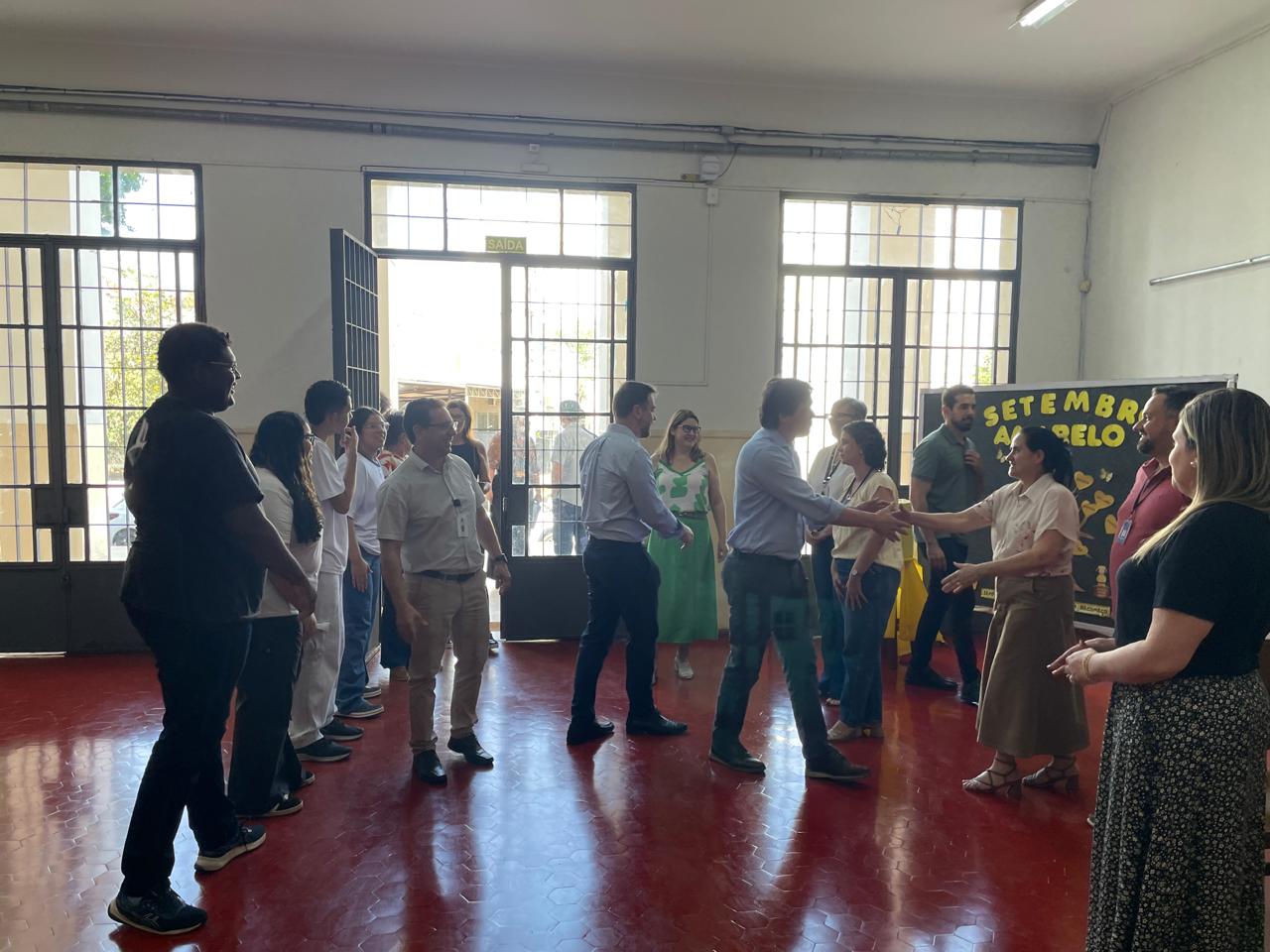Na unidade escolar, o grupo foi recepcionado pela diretora Andréia Aléssio Apolinário, estudantes e funcionários. O secretário executivo da Seduc e os diretores da FDE percorreram a escola, conhecendo os ambientes e conversando com alunos(as).
