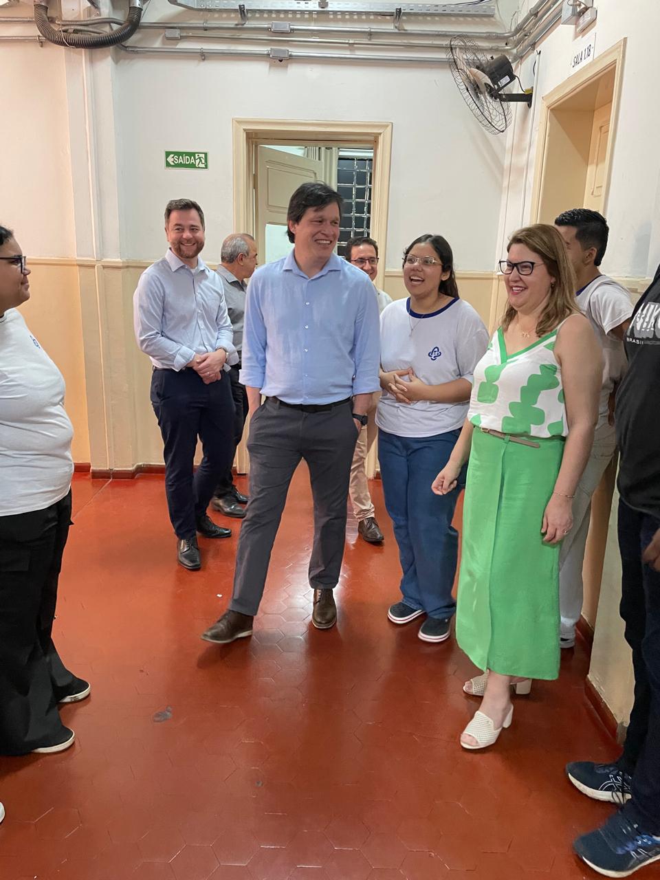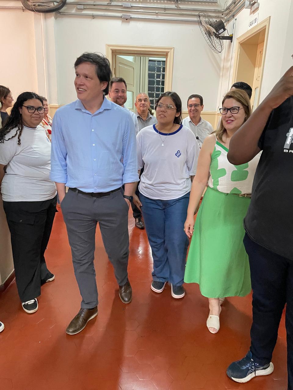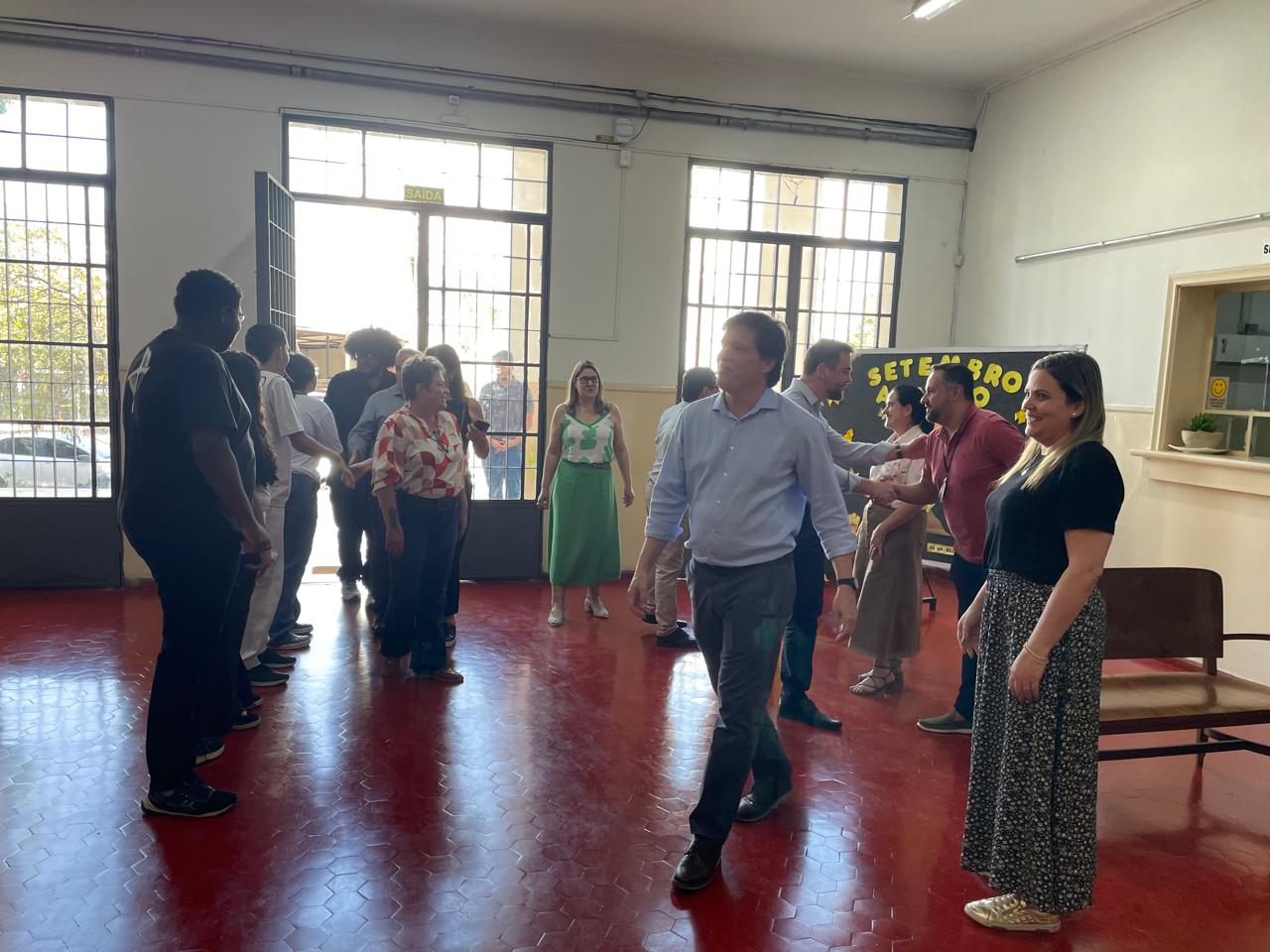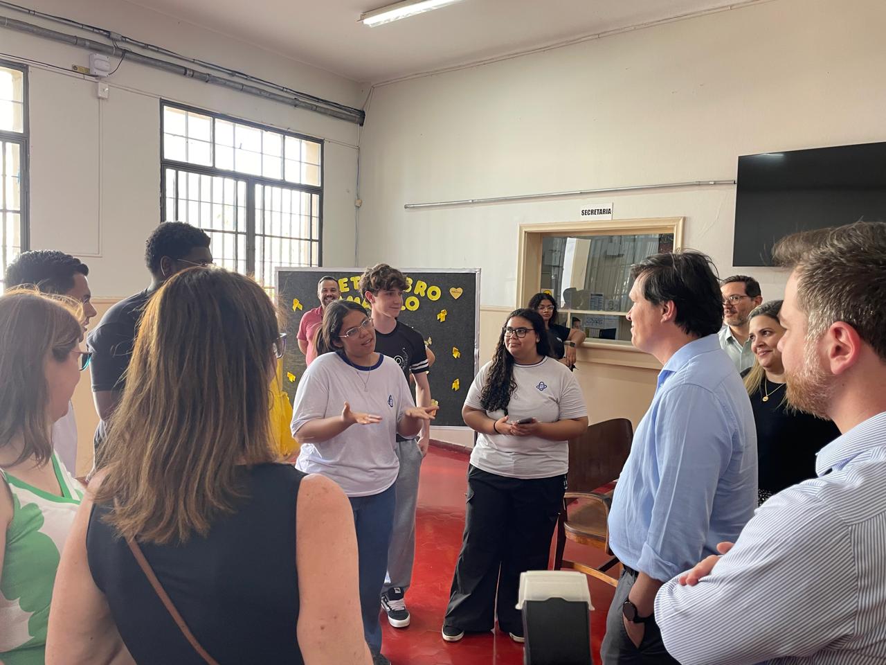 Na unidade escolar, o grupo foi recepcionado pela diretora Andréia Aléssio Apolinário, estudantes e funcionários. O secretário executivo da Seduc e os diretores da FDE percorreram a escola, conhecendo os ambientes e conversando com alunos(as).