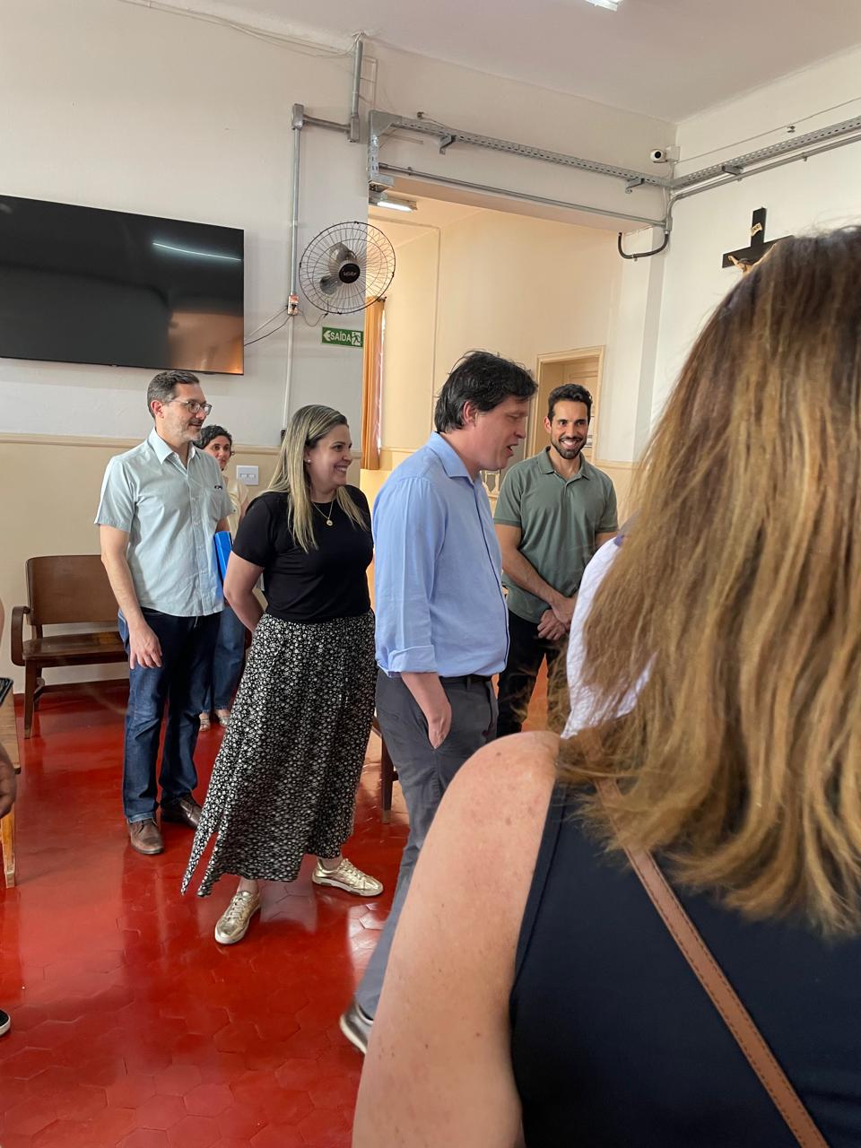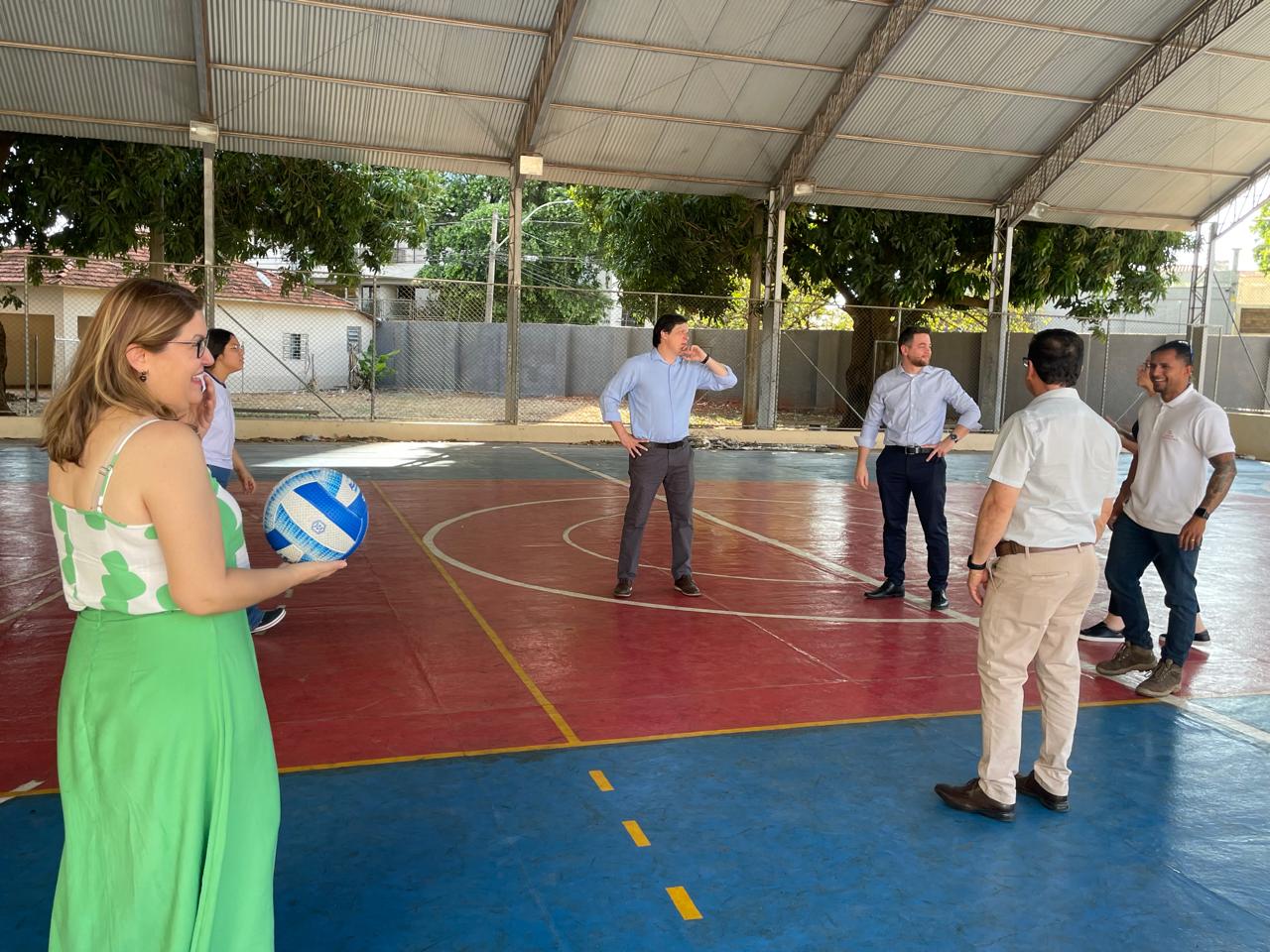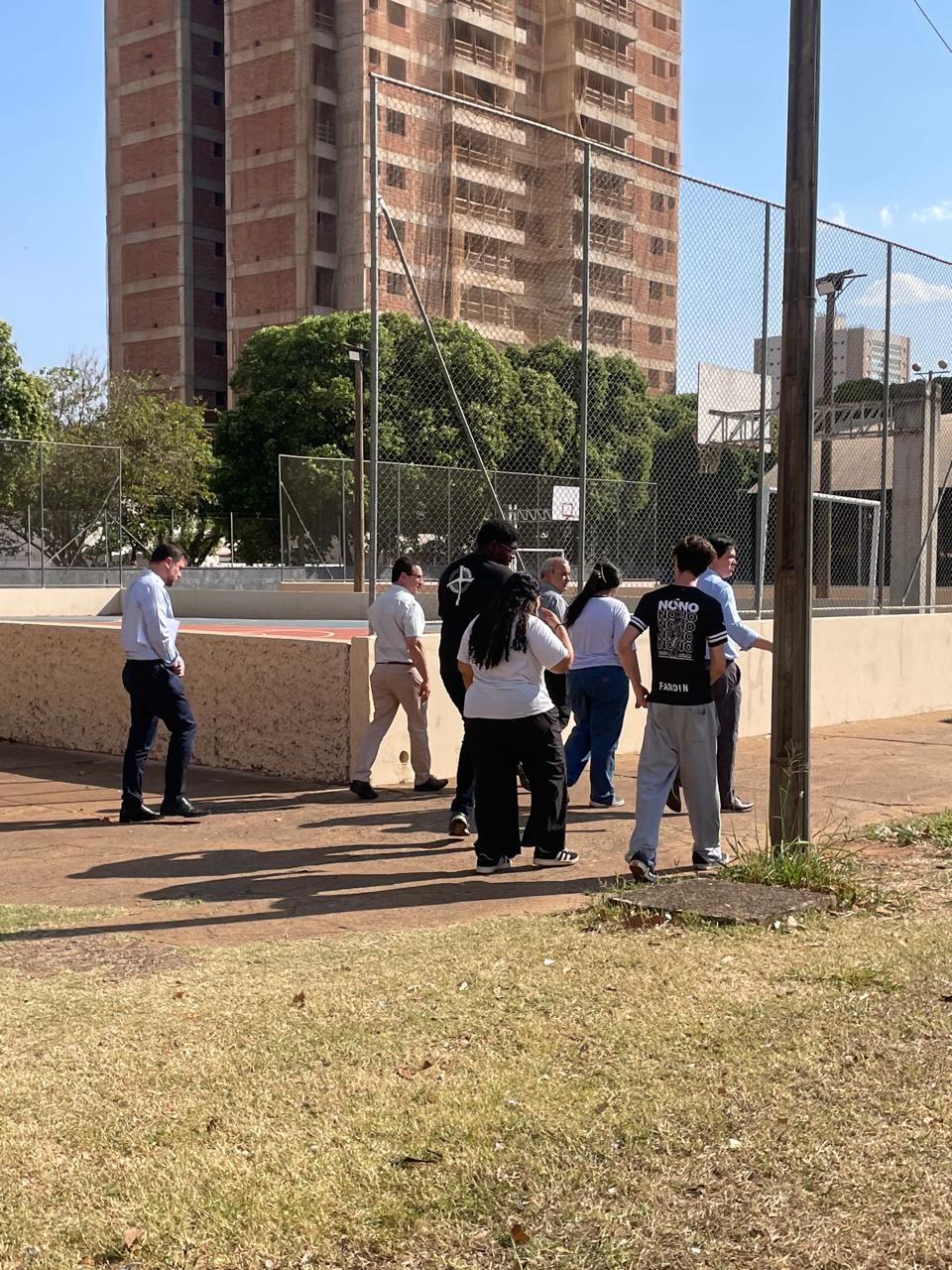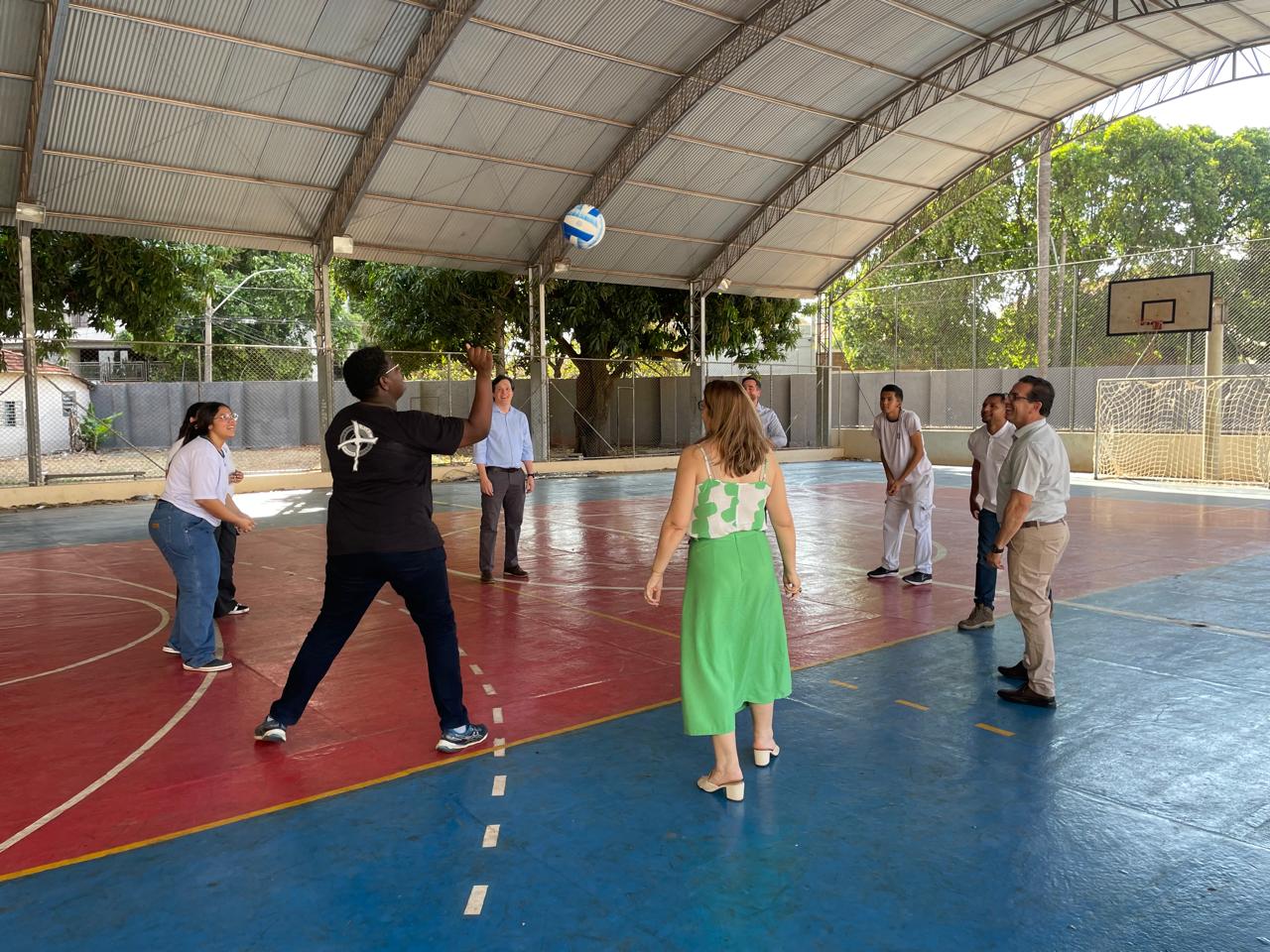 Na unidade escolar, o grupo foi recepcionado pela diretora Andréia Aléssio Apolinário, estudantes e funcionários. O secretário executivo da Seduc e os diretores da FDE percorreram a escola, conhecendo os ambientes e conversando com alunos(as).