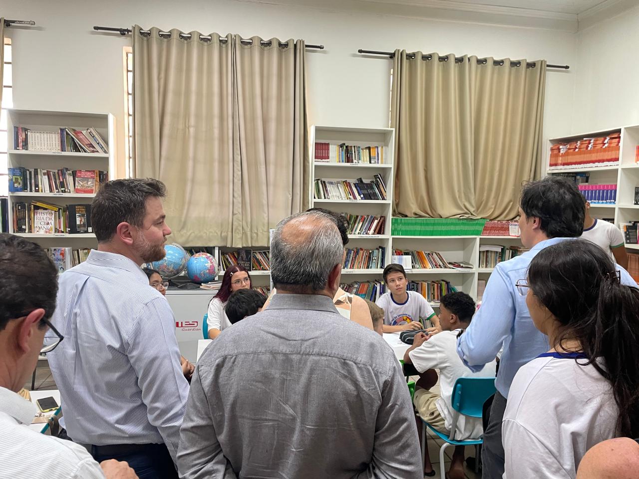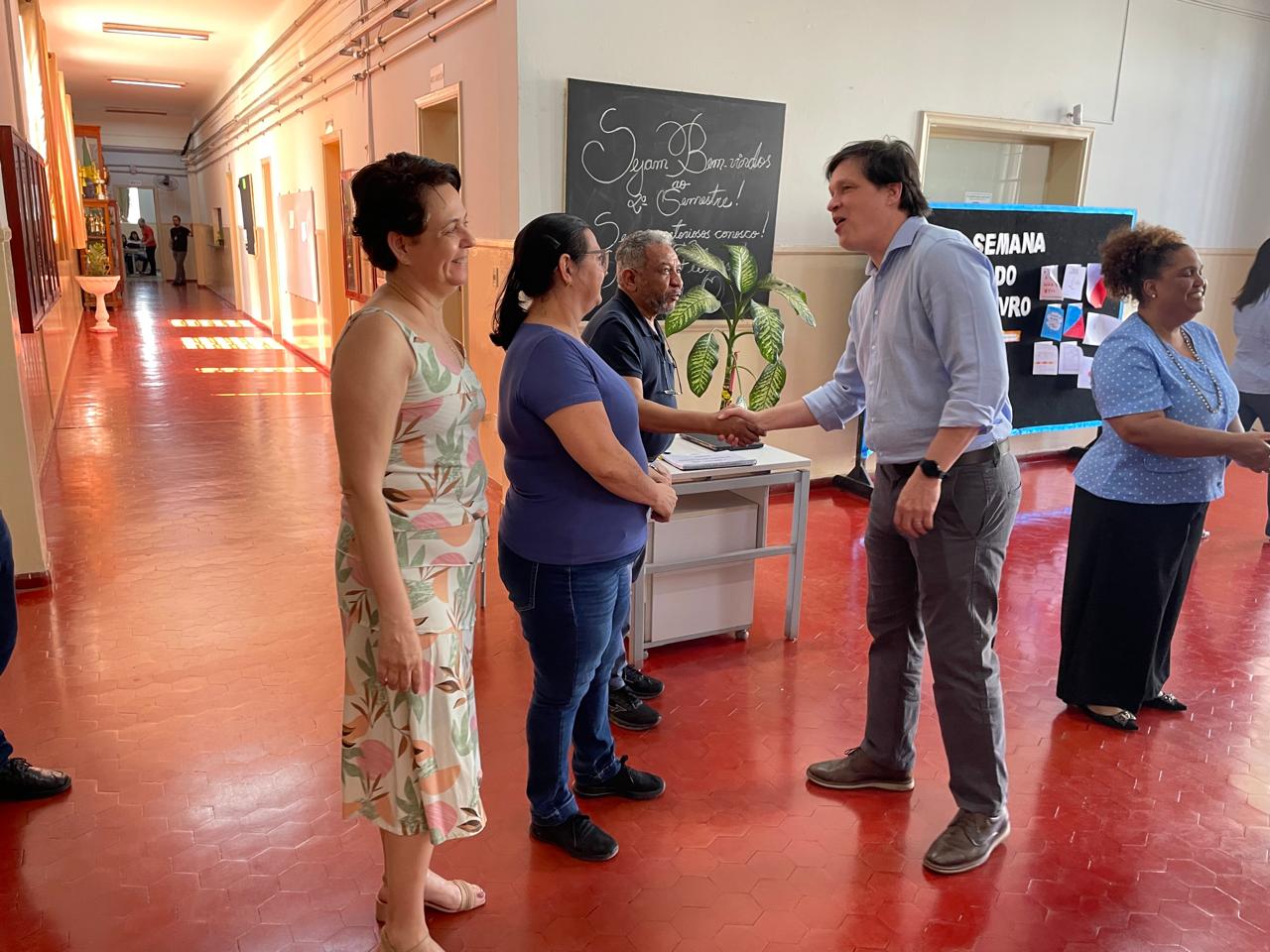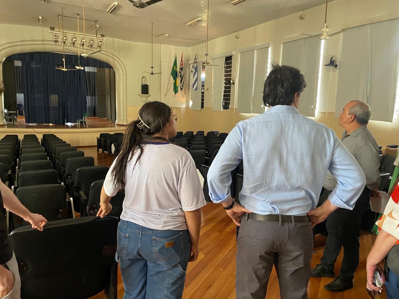 Juntamente com diretores da Fundação para o Desenvolvimento da Educação (FDE), Tiago Michele Ziruolo (de Obras e Serviços) e Cândido José dos Santos (de Projetos Especiais), e com o chefe de departamento – dirigente da URE de Araçatuba, Marcelo Bevilaqua, o secretário executivo da Seduc-SP foi à Escola Estadual Manoel Bento da Cruz.