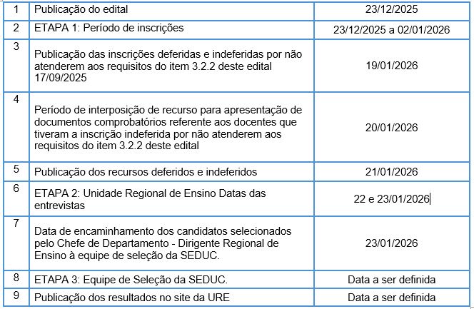 O preenchimento das vagas será realizado em conformidade com as normas e requisitos estabelecidos no Edital do Processo Seletivo para Diretor de Escola / Diretor Escolar 001/2026.