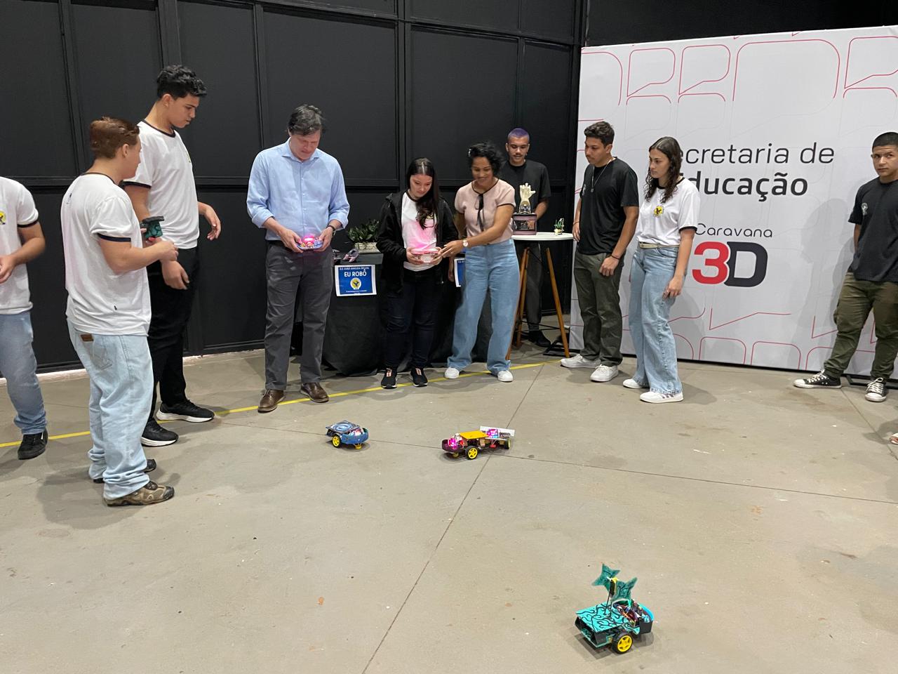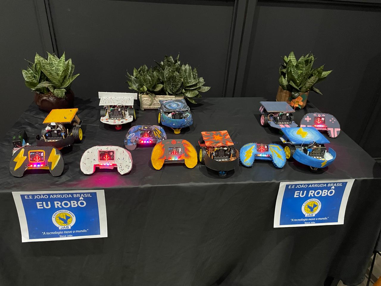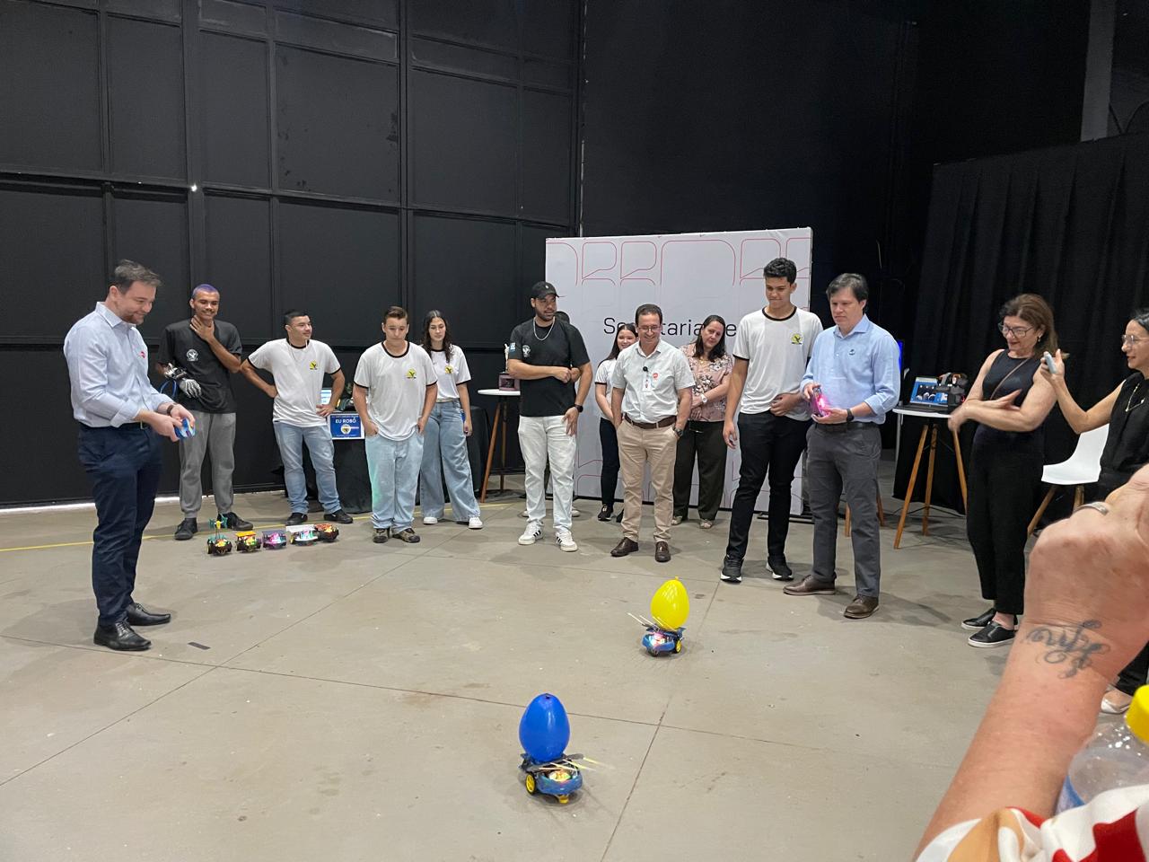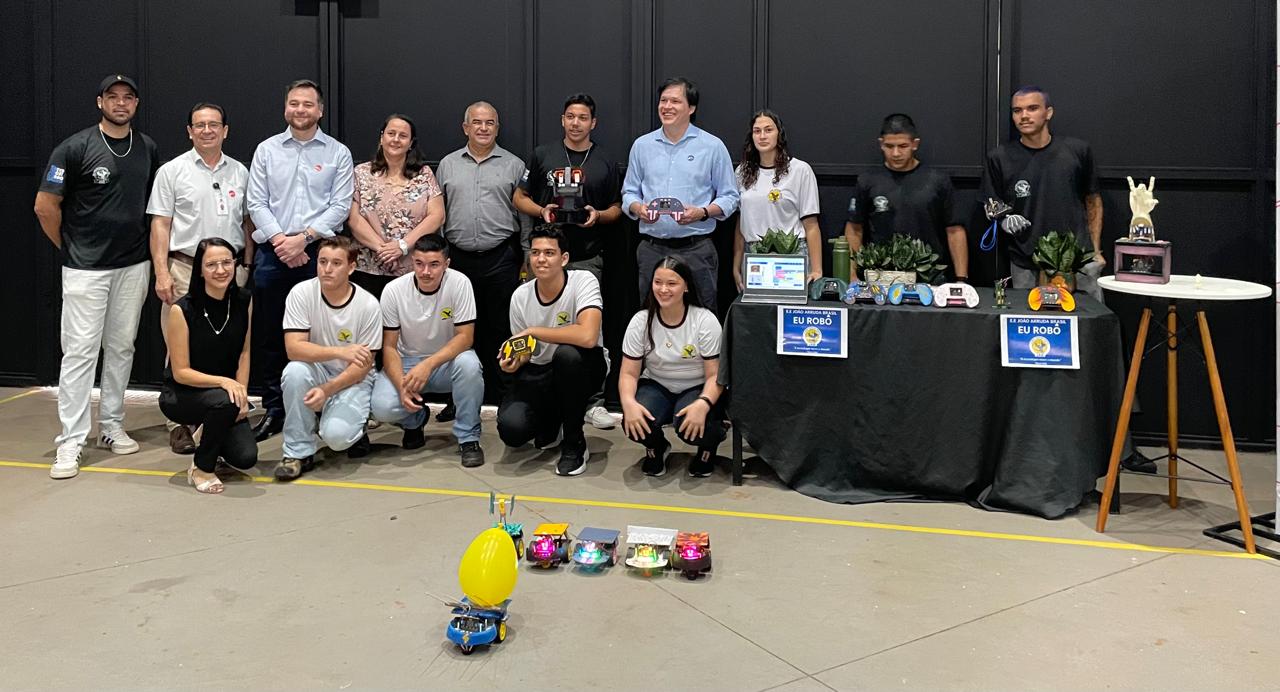 Durante o evento, alunos e professores da Escola Estadual João Arruda Brasil, de Araçatuba, expuseram seus trabalhos de robótica no estande da Secretaria da Educação do Estado.