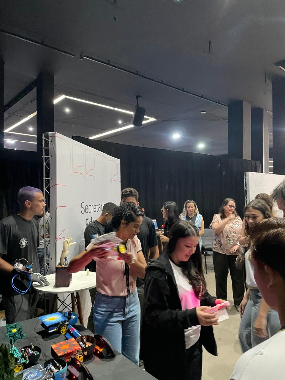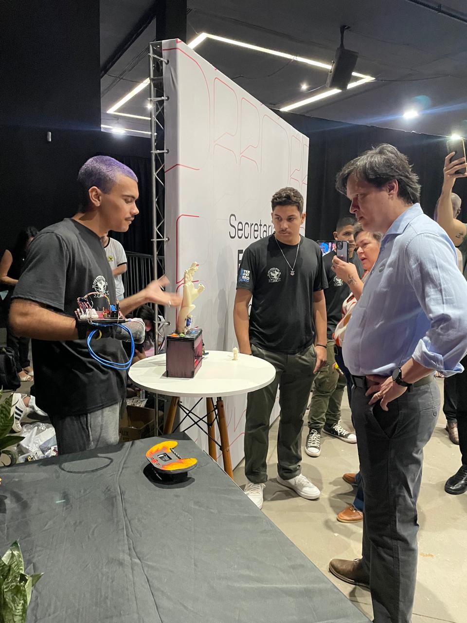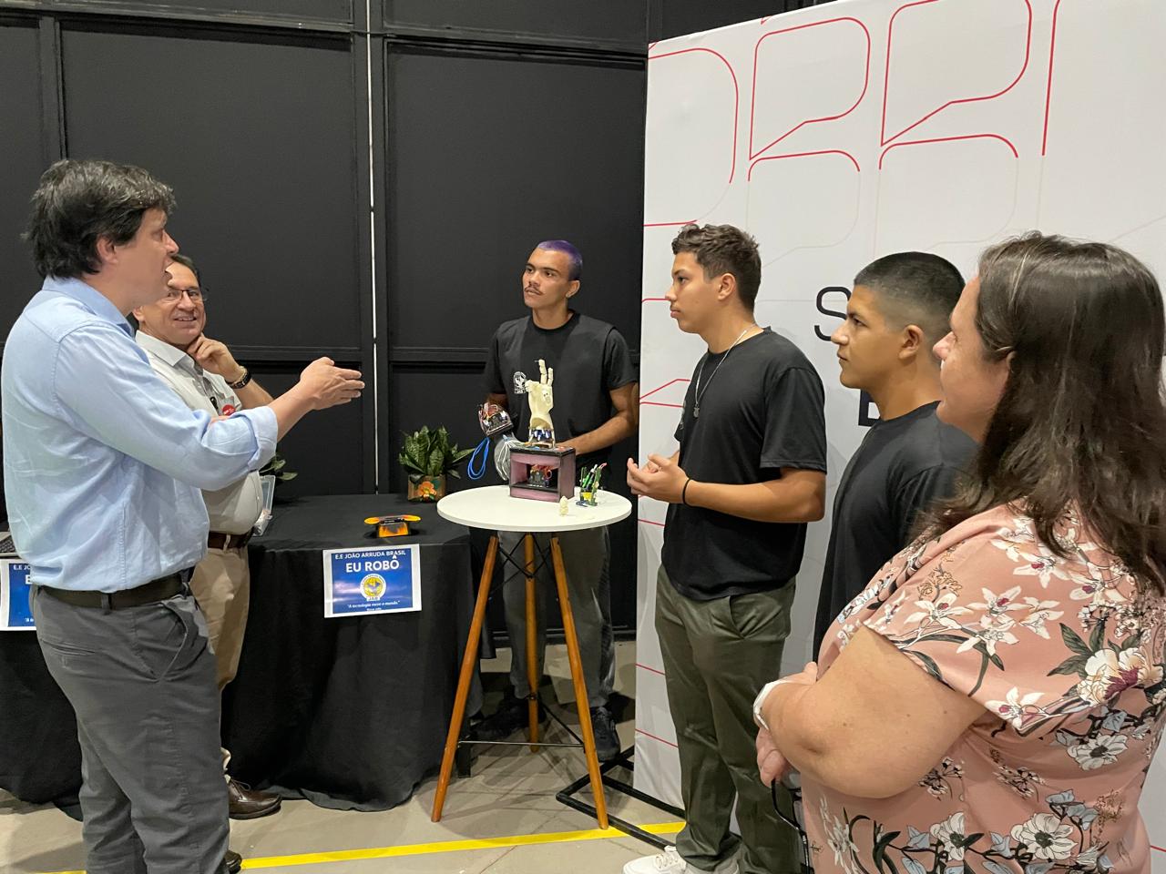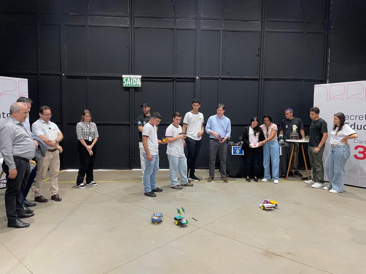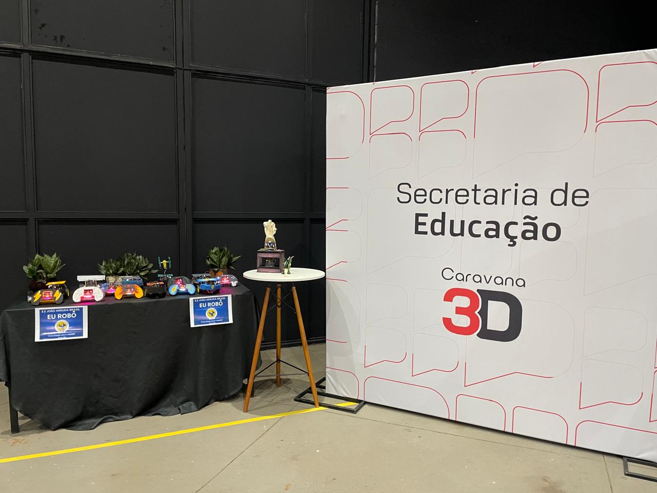 Durante o evento, alunos e professores da Escola Estadual João Arruda Brasil, de Araçatuba, expuseram seus trabalhos de robótica no estande da Secretaria da Educação do Estado.