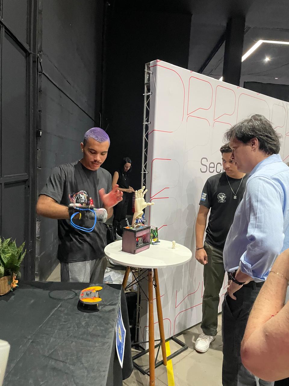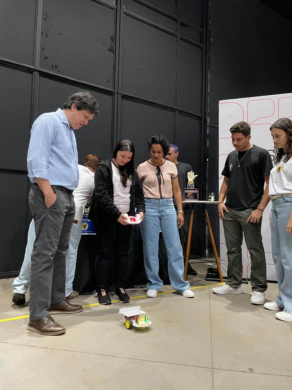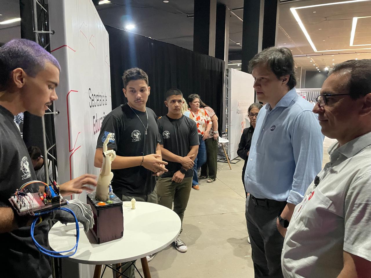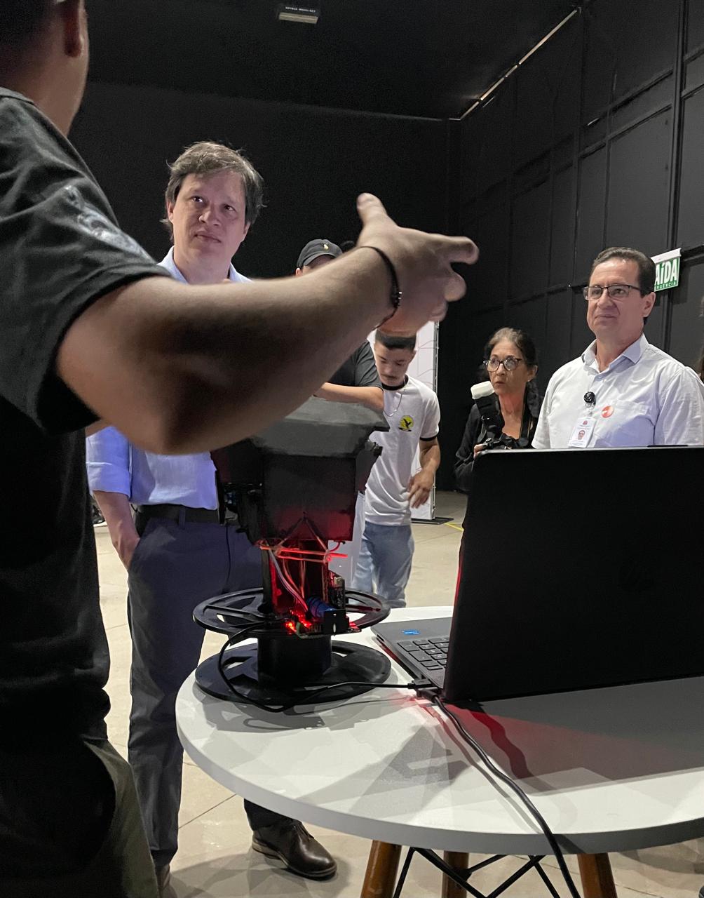 Durante o evento, alunos e professores da Escola Estadual João Arruda Brasil, de Araçatuba, expuseram seus trabalhos de robótica no estande da Secretaria da Educação do Estado.