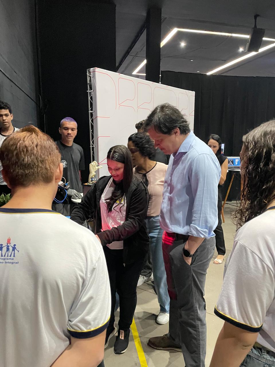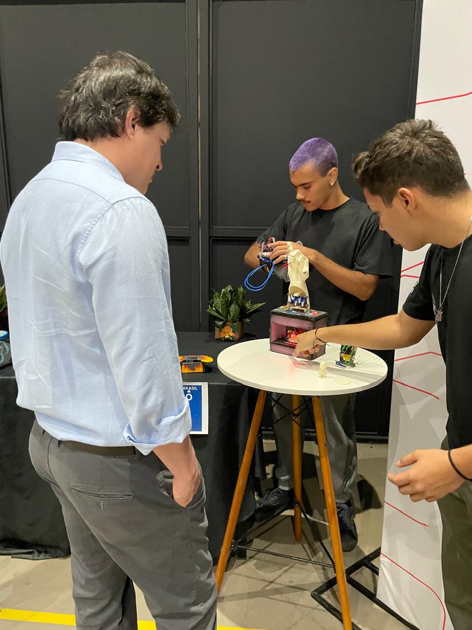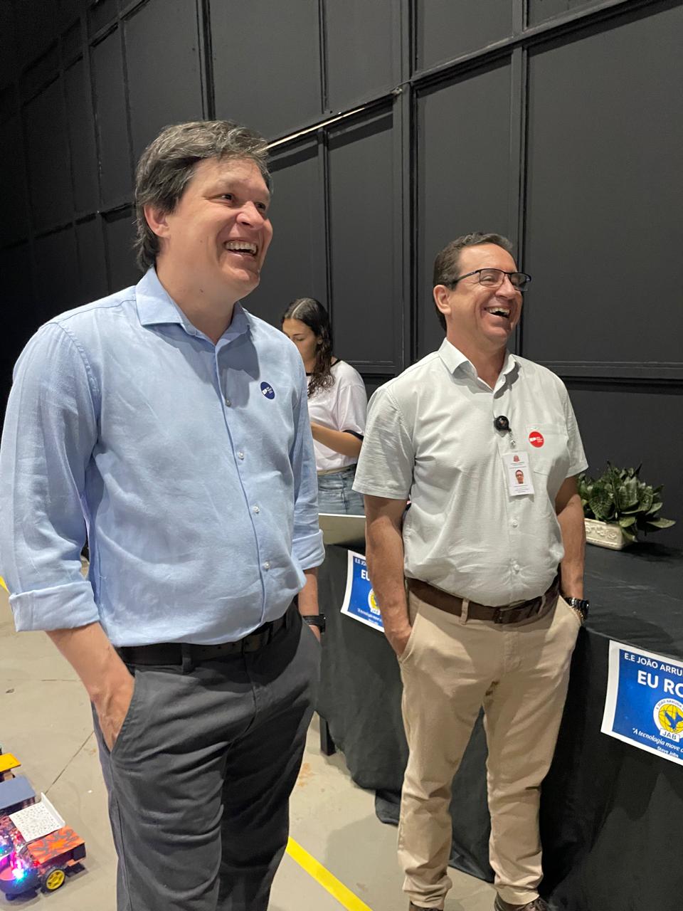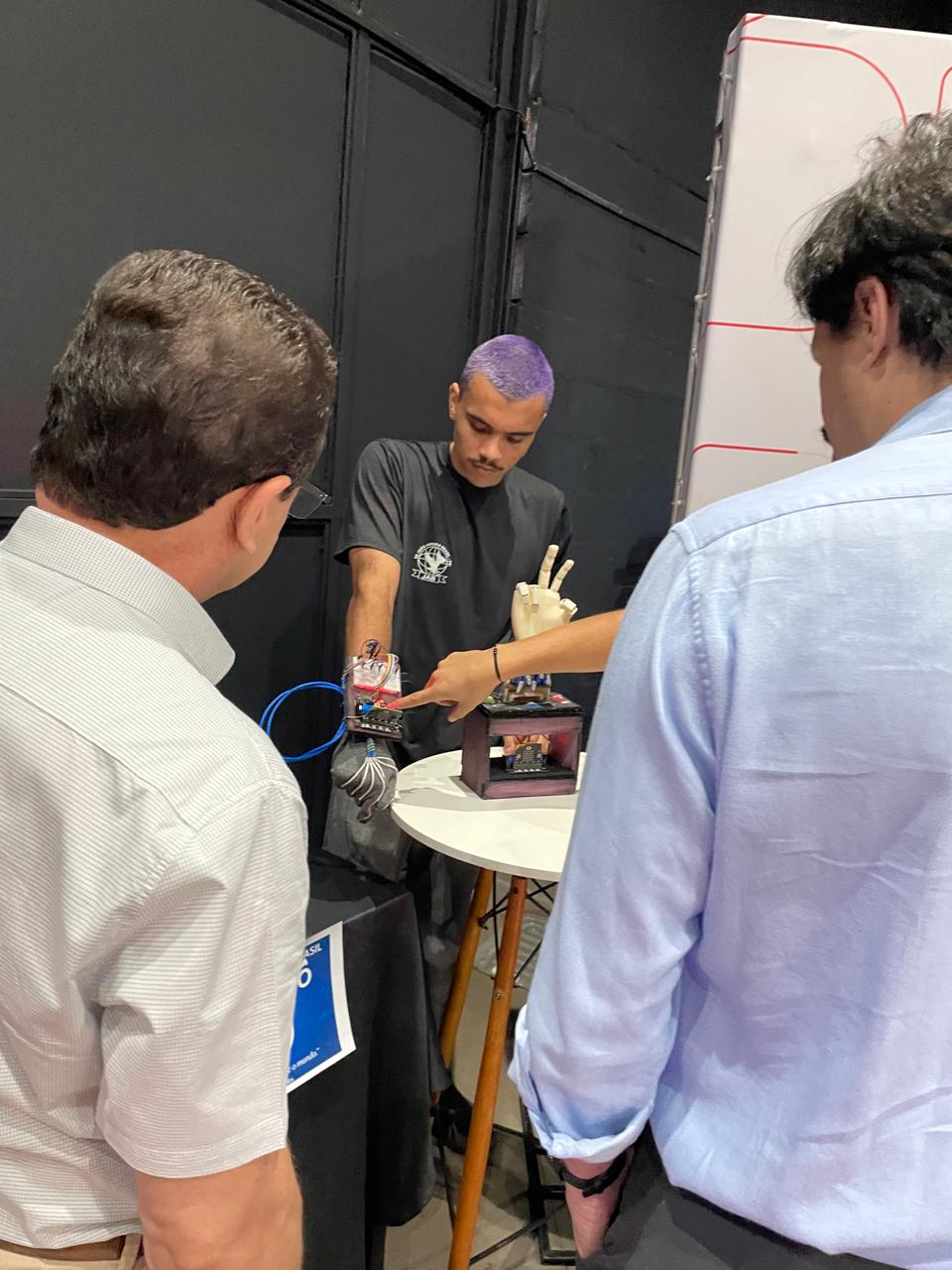 Durante o evento, alunos e professores da Escola Estadual João Arruda Brasil, de Araçatuba, expuseram seus trabalhos de robótica no estande da Secretaria da Educação do Estado.