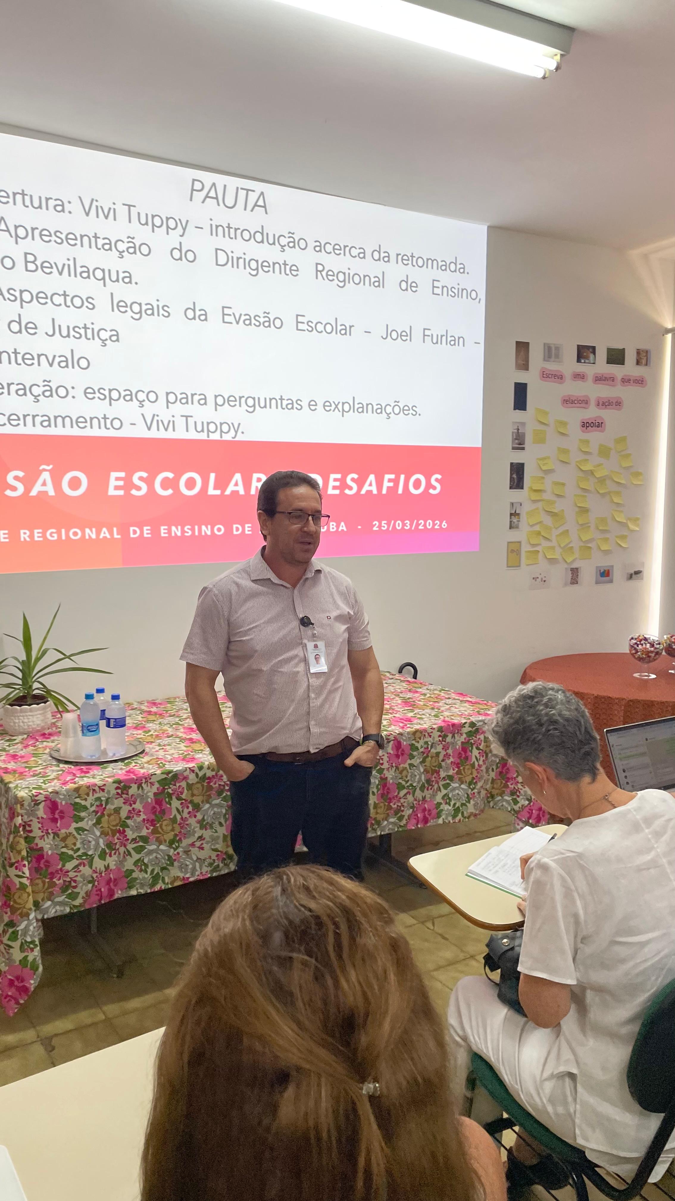 A abertura foi realizada pelo dirigente Marcelo Bevilaqua, que apresentou dados relevantes sobre a frequência dos estudantes. Já a formação ficou a cargo do promotor de Justiça Joel Furlan e da terapeuta emocional e professora de Ética de Práticas Meditativas Vivi Tuppy.